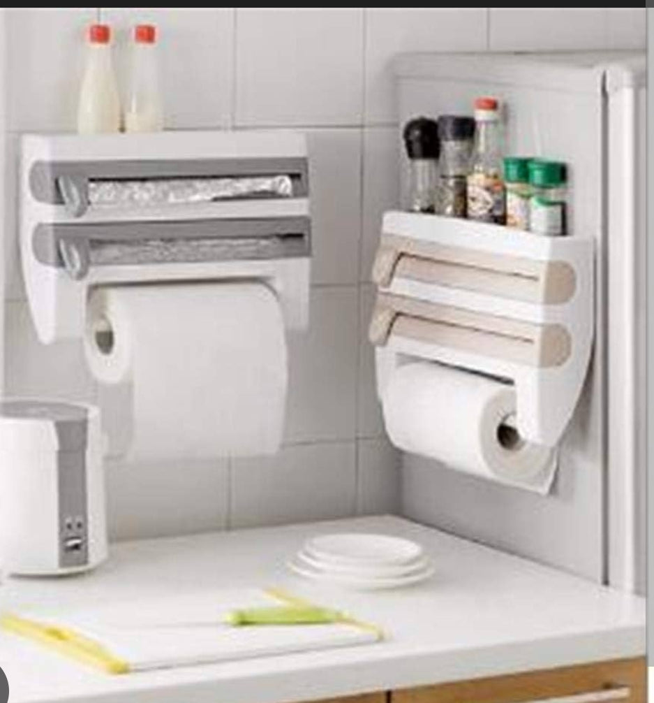 🔥 Con Organizer 4 en 1 tendrás TODO a la mano en un solo lugar: papel aluminio, servitoallas y playo transparente, siempre listos para usar con cortes limpios y sin enredos. Además, tendrás un espacio extra para tus especias favoritas, justo donde más las necesitas.